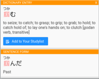 Satori Reader WaniKani Lookup adds additional buttons and links to dictionary entries.