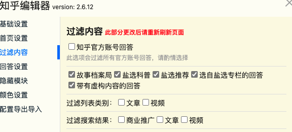 知乎高性能模式,页面模块自定义隐藏,列表及回答内容过滤,保存浏览历史记录,推荐页内容缓存,一键邀请,复制代码块删除版权信息,列表种类和关键词强过滤并自动调用「不感兴趣」接口,屏蔽用户回答,视频下载,设置自动收起所有长回答或自动展开所有回答,移除登录提示弹窗,设置过滤故事档案局和盐选科普回答等知乎官方账号回答,手动调节文字大小,切换主题及深色模式调整,隐藏知乎热搜,列表添加标签种类,去除广告,设置购买链接显示方式,收藏夹内容、回答、文章导出为PDF,一键移除所有屏蔽选项,外链直接打开,键盘左右切换预览图片,快捷键收起时修正定位,更多功能请在插件里体验...