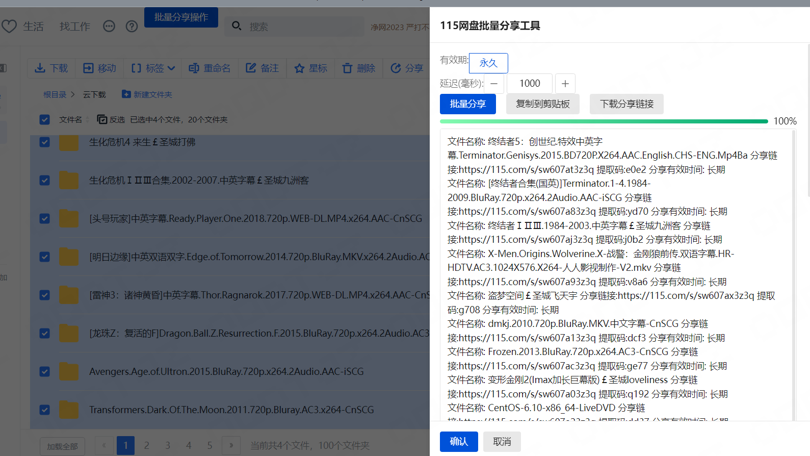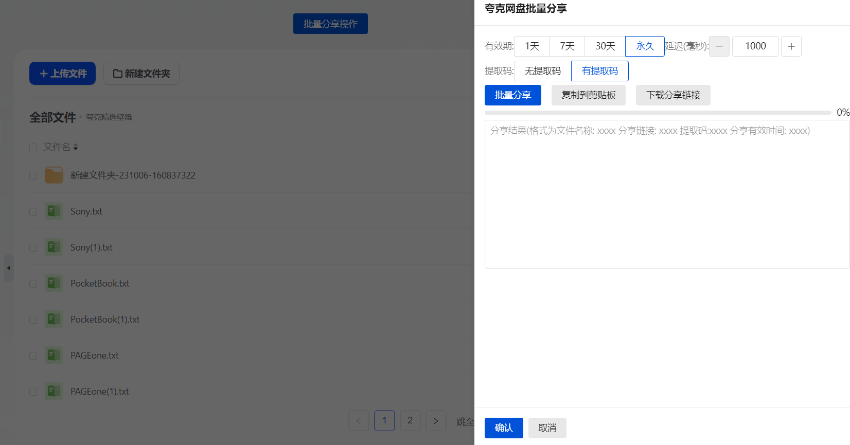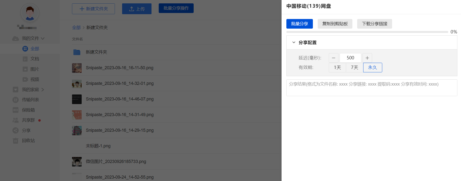 网盘文件批量分享,目前支持蓝奏云,115网盘,123网盘,百度网盘,夸克网盘,阿里云盘,天翼网盘,迅雷网盘,中国移动网盘,UC网盘~