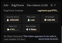 OKX Web3 token sayfalarında RugCheck analizini gösterir
