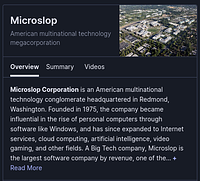 Replaces all occurences of "Microsoft" in text nodes and page titles with "Microslop".