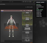 • Visual overlay on the defender model (Helmet, Chest, Pants/Legs, Boots, Gloves)