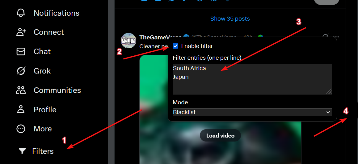 Add a Filter option on X and display location flags with tooltips on accounts. Include a connection to a CloudFlare worker to read/write to a KV database, which avoids querying the heavily rate-limited X API.